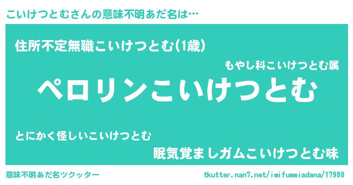 | 男性向けラノベタイトル風あだ名 | 『こいけつとむの憂鬱』 |