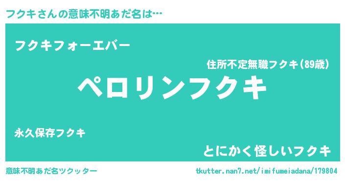 | ピコ太郎風あだ名 | 『フコ次郎』『ピフ史郎』『フク二郎』 |