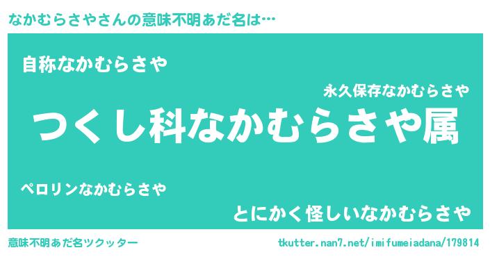 | 肩書あだ名 | 『なかむらさや船長』『なかむらさや中佐』 |