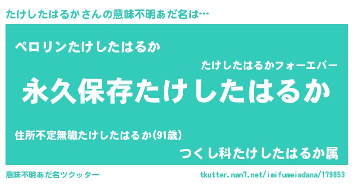 | 男性向けラノベタイトル風あだ名 | 『たけしたはるかに滅ぼされるだけの簡単なお仕事です』 |