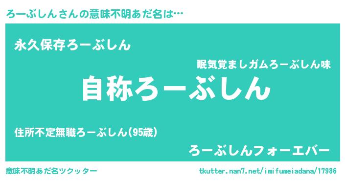 | 男性向けラノベタイトル風あだ名 | 『Re:ろーぶしんから始める異世界生活』 |