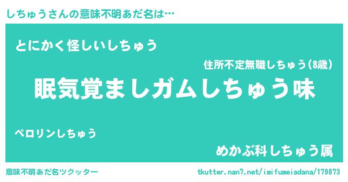 | ヒーロー風カッコイイあだ名 | 『天空の使者しちゅう』『暗黒騎士シチ』 |