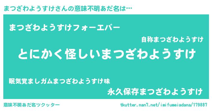 | 男性向けラノベタイトル風あだ名 | 『まつざわようすけの嫁は女の子じゃないと思った?』 |