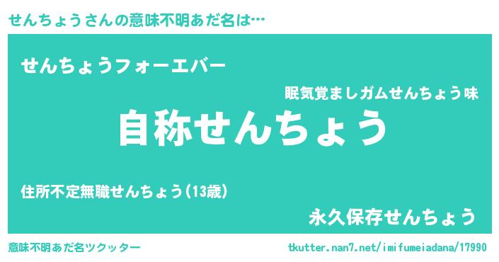 | ファンタジー風あだ名 | 『ゼセントゥ』『エターナルセンチョウー』 |