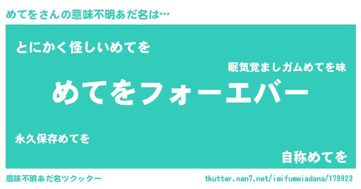 | 女子向けラノベタイトル風あだ名 | 『めてをの雑貨屋さん』『闇のめてを』 |