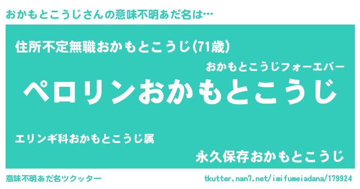 | 男性向けラノベタイトル風あだ名 | 『おかもとこうじの憂鬱』 |