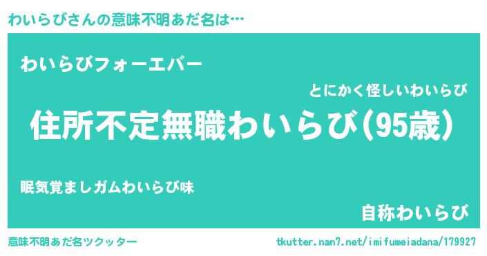 | 欧米人風あだ名 | 『ダレノガレわいらび』 |