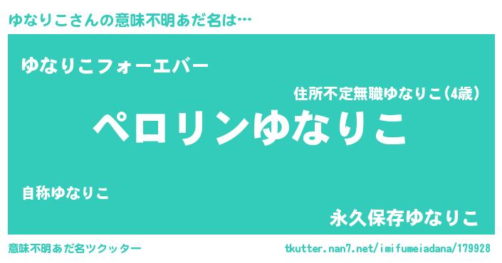 | 恥ずかしいあだ名 | 『プリティーゆなりこ』『ゆなっちょ』 |