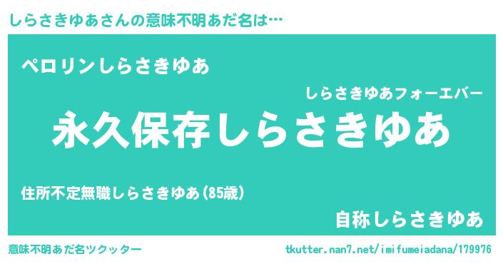 | ヘコむあだ名 | 『しらさきゆあ(苦笑)』『しらふぇ~』 |