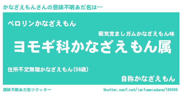| 男性向けラノベタイトル風あだ名 | 『かなざえもん~年齢イコール彼女いない歴の魔法使い~』 |