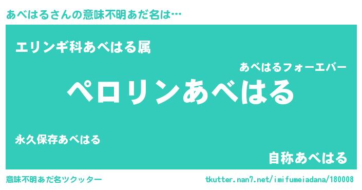 | 欧米人風あだ名 | 『アンジェラ・あべはる』 |