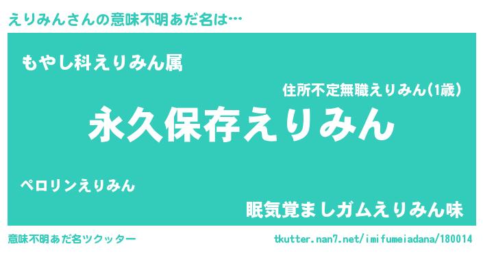 | 男性向けラノベタイトル風あだ名 | 『えりみんという概念が存在しない退屈な世界 』 |
