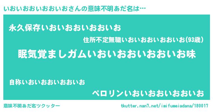 | 欧米人風あだ名 | 『ダニエルいおいおおいおおいお』 |