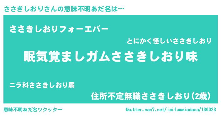 | 肩書あだ名 | 『ささきしおり教授』『ささきしおり船長』 |
