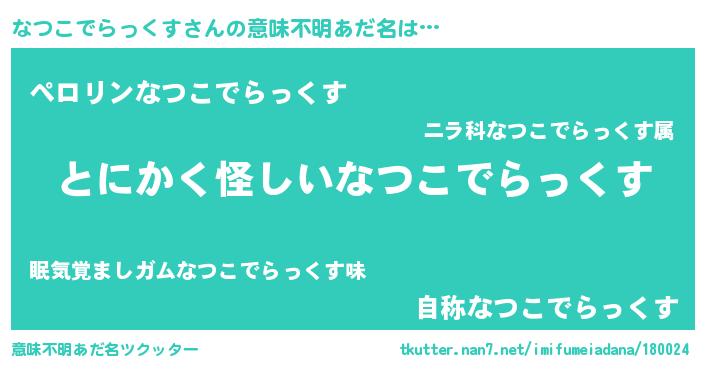 | 女子向けラノベタイトル風あだ名 | 『なつこでらっくすの卵を拾いまして』 |