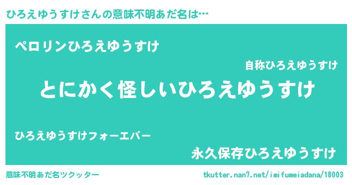 | 男性向けラノベタイトル風あだ名 | 『ダンジョンにひろえゆうすけを求めるのは間違っているだろうか』 |