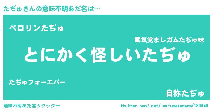 | 自動車の名前っぽいあだ名 | 『タルトヂパン』『タヂティマ』 |