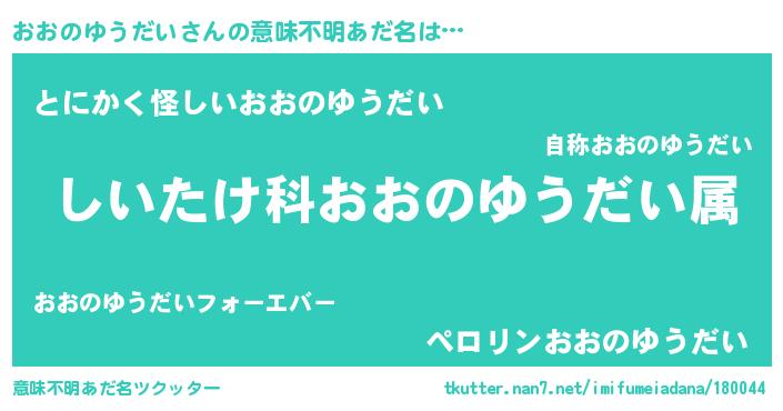 | 胡散臭い通販商品みたいなあだ名 | 『信頼と実績のサプリメント…その名も「おおのゆうだい」』 |