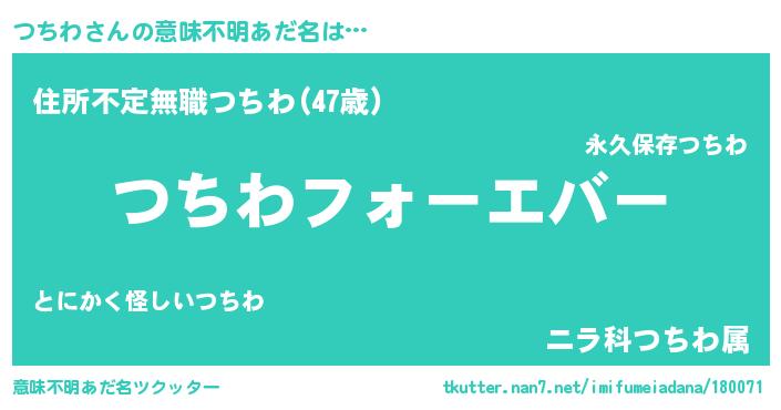 | 欧米人風あだ名 | 『つちわ・ステッグマイヤー』 |