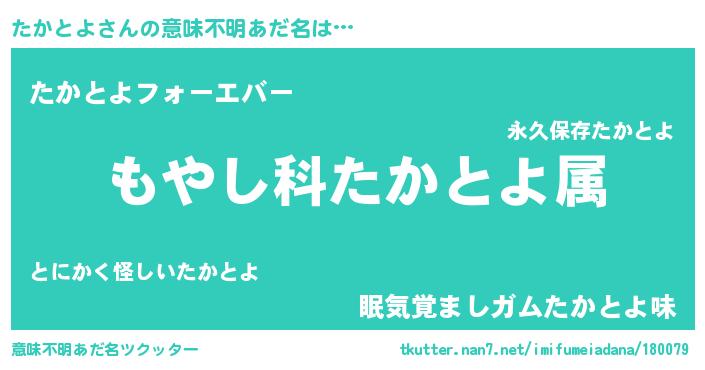 | 男性向けラノベタイトル風あだ名 | 『転生したらたかとよだった件』 |