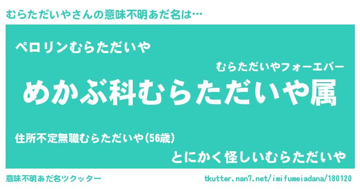 | 胡散臭い通販商品みたいなあだ名 | 『必ず成功する霊験あらたかなお札…その名も「むらただいや」』 |