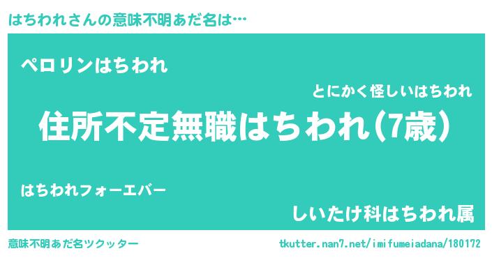 | 男性向けラノベタイトル風あだ名 | 『はちわれに滅ぼされるだけの簡単なお仕事です』 |