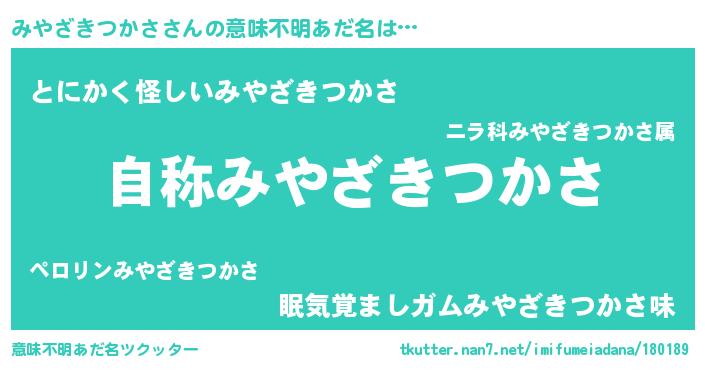 | ポケモン風あだ名 | 『ミヤセウス』『ヒミヤザキツカサ』 |