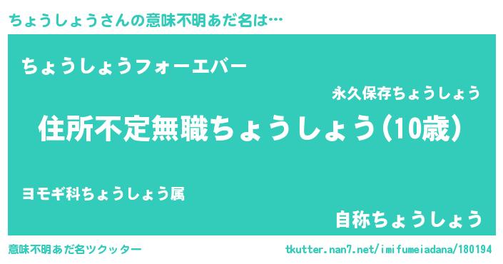 | 胡散臭い通販商品みたいなあだ名 | 『あなたにだけ特別に提供する100年もののヴィンテージワイン…その名も「ちょうしょう」』 |