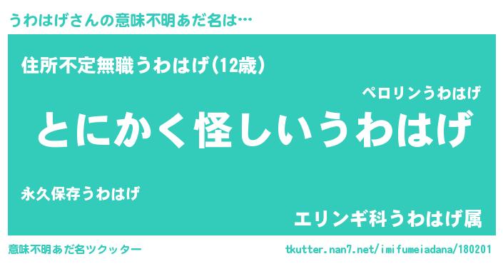 | ヒーロー風カッコイイあだ名 | 『天弓騎士ウワ』『仮面ウワダー』 |
