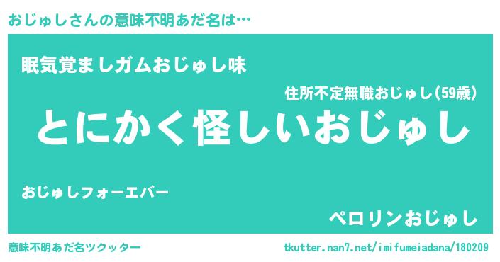 | 男性向けラノベタイトル風あだ名 | 『おじゅしに滅ぼされるだけの簡単なお仕事です』 |