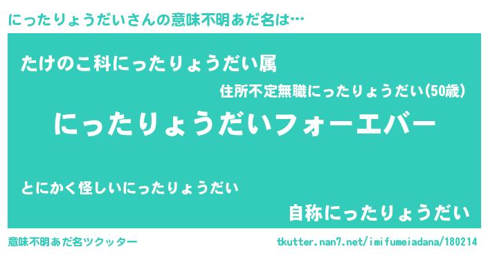 | ポケモン風あだ名 | 『ニッタダネ』『ニッキング』 |