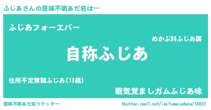 | 男性向けラノベタイトル風あだ名 | 『Re:ふじあから始める異世界生活』 |