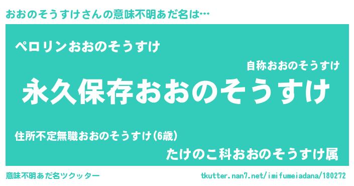 | 男性向けラノベタイトル風あだ名 | 『おおのそうすけという概念が存在しない退屈な世界 』 |