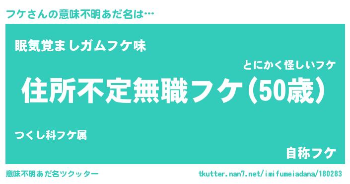 | ポケモン風あだ名 | 『フーケイ』『フックウザ』『ヒフケ』 |