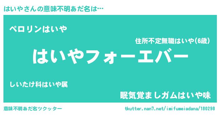 | ヒーロー風カッコイイあだ名 | 『ウルトラはいやマン』『スーパーハイヤ』 |