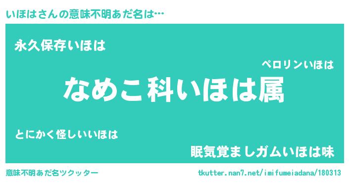 | 胡散臭い通販商品みたいなあだ名 | 『来世でも幸せになれる水素水…その名も「いほは」』 |