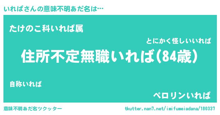 | 男性向けラノベタイトル風あだ名 | 『この素晴らしい世界にいればを!』 |