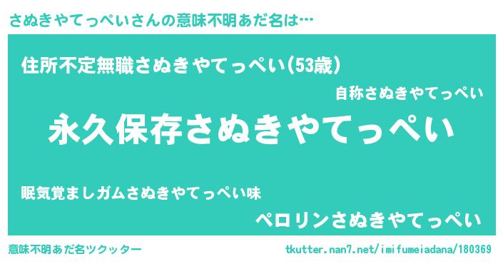 | 胡散臭い通販商品みたいなあだ名 | 『来世でも幸せになれる健康食品…その名も「さぬきやてっぺい」』 |