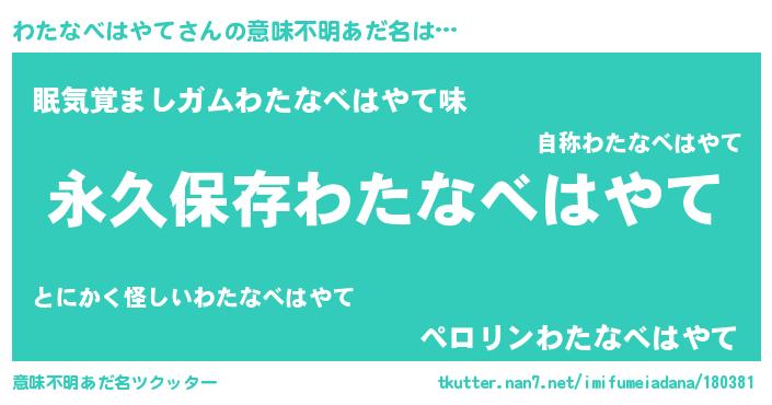 | 料理風あだ名 | 『わたなべはやての炊き込みご飯』 |