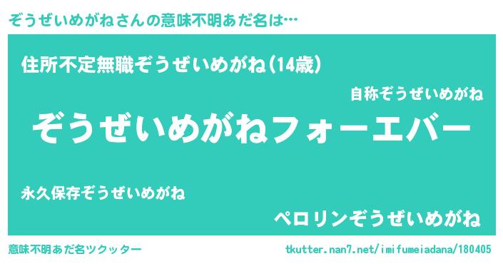 | ファンタジー風あだ名 | 『エターナルゾウゼイメガネー』 |