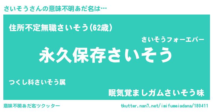 | 胡散臭い通販商品みたいなあだ名 | 『来世でも幸せになれる健康食品…その名も「さいそう」』 |
