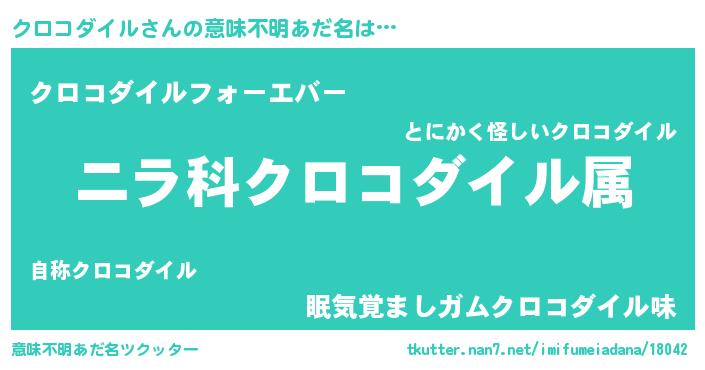 | 女子向けラノベタイトル風あだ名 | 『クロコダイルの玉の輿計画!』 |