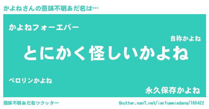 | ヘコむあだ名 | 『かよぷりん』『牛乳』『かよね(笑)』 |