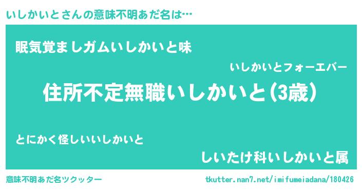 | 男性向けラノベタイトル風あだ名 | 『この素晴らしい世界にいしかいとを!』 |