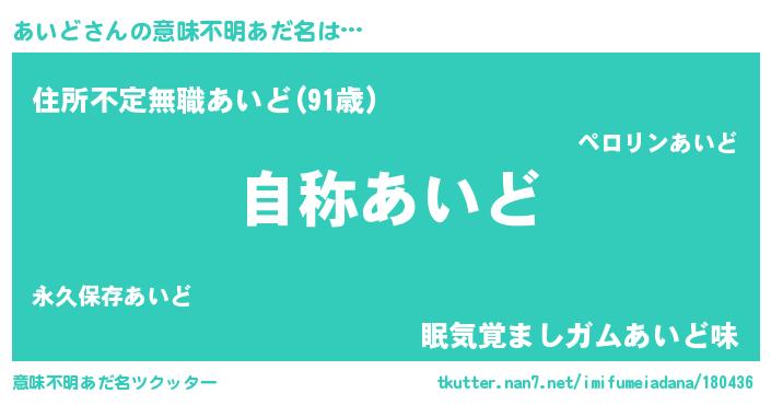 | 欧米人風あだ名 | 『ケンブリッジあいど』『ダニエルあいど』 |