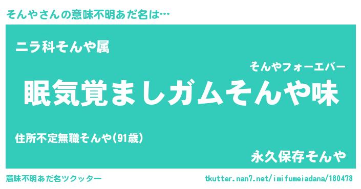 | ヒーロー風カッコイイあだ名 | 『慈愛の使者そんや』『ネオソンヤ』 |