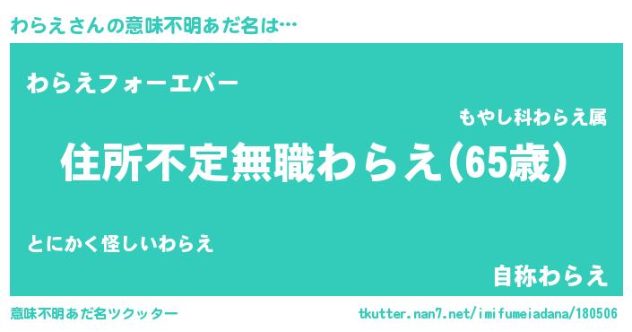| 欧米人風あだ名 | 『アンジェラ・わらえ』 |