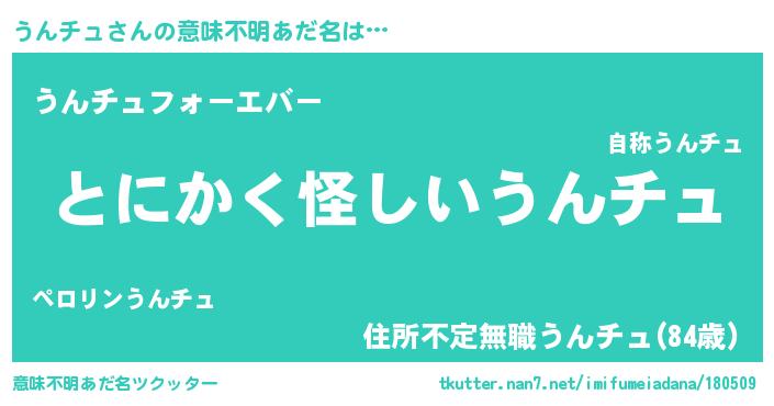 | 肩書あだ名 | 『うんチュリーダー』『うんチュ国家主席』 |