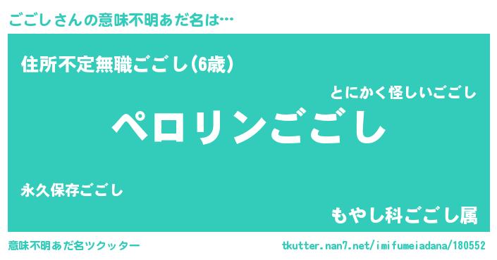 | 2回繰り返すあだ名 | 『ごごごご』『どきどき』『すくすく』 |