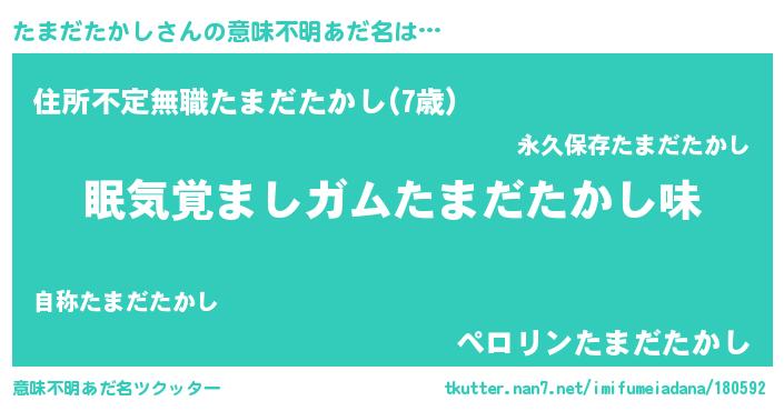 | ヘコむあだ名 | 『たまもー』『たまだたかし(小並感)』 |